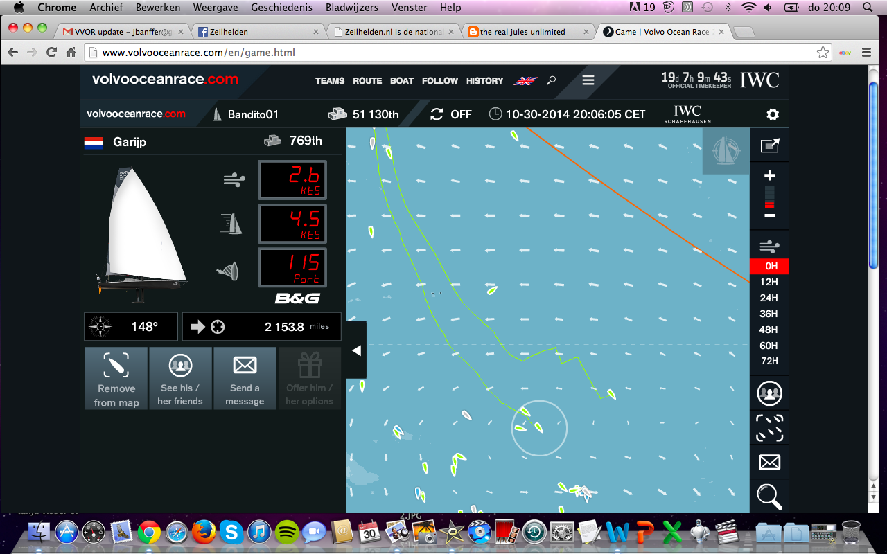 De echte boten zijn zuidelijker gegaan dan de Garijp boot, de voorste boten hebben nog 2200 mijl te gaan. Heb er voor gekozen om op een zo snel mogelijke manier door het hoog te komen en niet te veel plaatsen te verliezen. In een dag of 3 kunnen we de balans op maken en zien waar we dan liggen.
