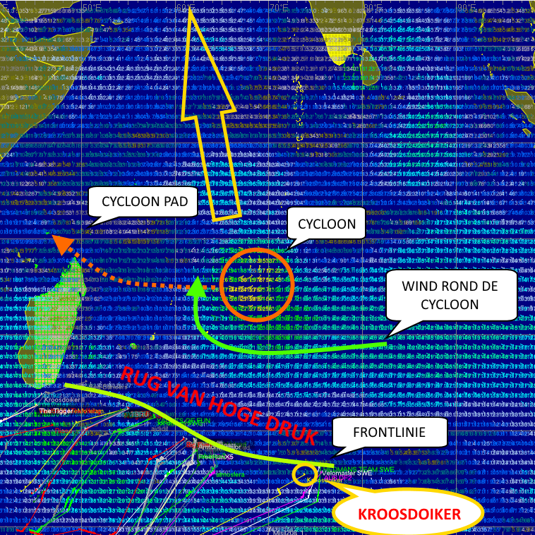In de eerste instantie ben ik daarom diep omlaag gedoken om zoveel mogelijk wind te halen. Daardoor heb ik met flinke snelheid onder het veld door kunnen zeilen en uiteindelijk ben ik nu als een van de meeste oostelijke deelnemers omhoog aan het gaan. Nu liggen we met zijn allen naast elkaar tegen een rug van hoge druk aan te duwen, terwijl daarachter zich een tropische cycloon aan het ontwikkelen is die westwaarts gaat. De meest westelijke groep moet nog om Mauritius heen en komt dan de cycloon tegen, wij gaan nu omhoog en varen achter de cycloon om. Nu maar hopen dat hij een tijdje in de buurt van Madagascar blijft hangen, want dan kunnen wij goed bezeild omhoog richting de Malediven terwijl de rest zwaar gereefd minder gang kan maken. Bij de Malediven wacht ons dan nog een doldrum gebied (de ITCZ, Inter Tropische Convergentie Zone), totdat we met de moesson wind mee naar Oman kunnen varen. Oostelijk heeft daar ook voordeel, want dan is het beter bezeild. De komende dagen gaan we zien wie aan het langste eind trekt, het is spannend…