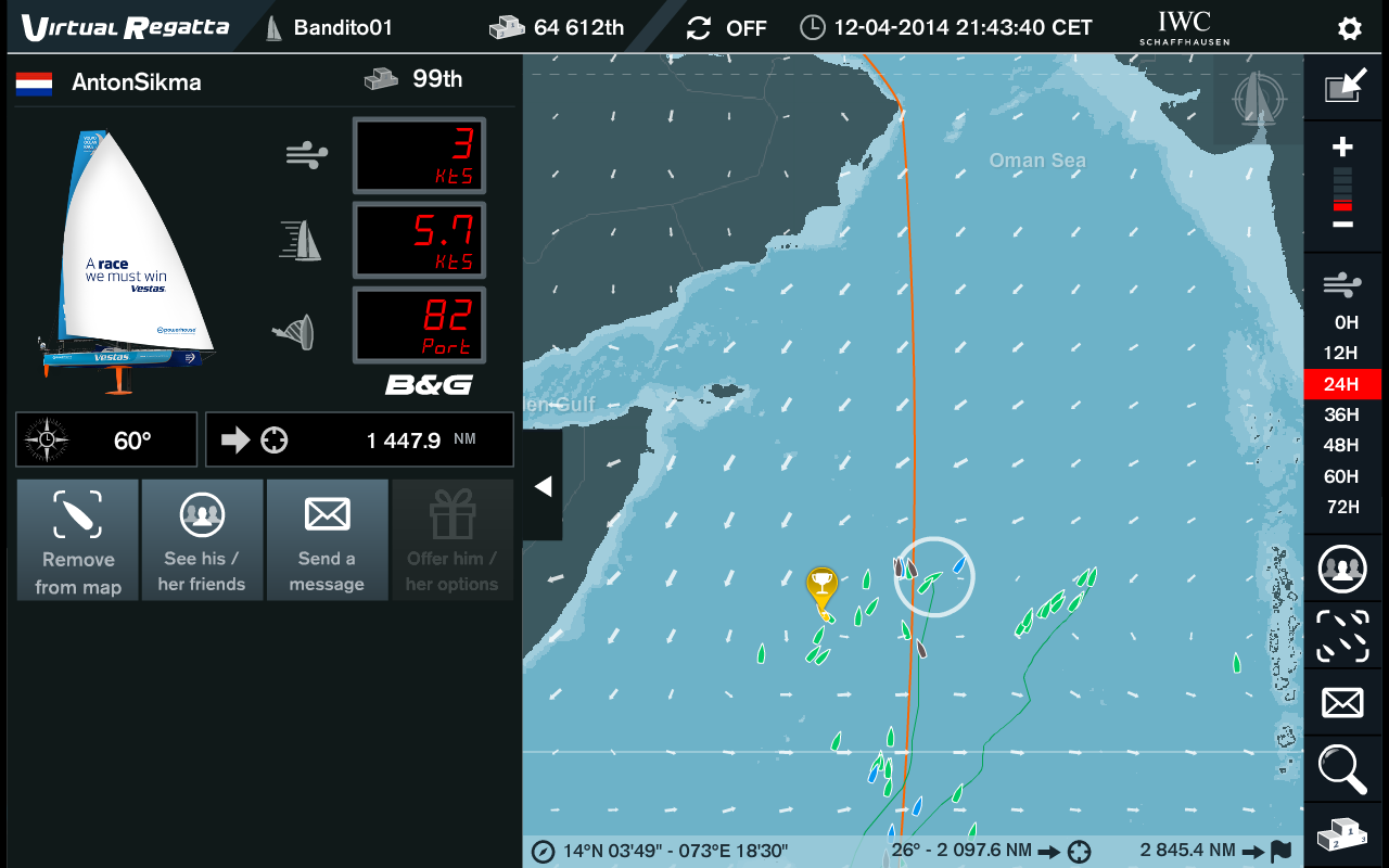 Na 30 uur lang op de 1e plek te hebben gestaan was ik uiteindelijk naar de 190e plek weggezakt. Nu zijn wij weer een week verder en in het begin leek het er niet op dat ik weer zou stijgen. De concurrentie liep alleen maar uit en een plekje stijgen zat er niet in. Maar gelukkig veranderde de wind erg goed voor mij en kon ik snel achter de concurrentie aangaan.( zij lagen toen zo’n 130 mijl op mij voor). Gelukkig troffen zij het hier niet omdat zij de zwakke wind pakte en wanneer ik op hun positie was de wind juist weer was aangetrokken. Zo ben ik nu in de top 50 beland en wel op de 47e plek. Met nog maar een achterstand van 23 mijl op de nummer 1. Dit beloofd dus veel goeds voor mij en daardoor misschien zelfs wel een plekje in de top 10 voor even? In ieder geval zijn we nog zo ongeveer een klein weekje onderweg en de top 100 is mijn streven en alles wat hoger is is dus mooi meegenomen! Toch hoop ik stiekem op een stunt maar dat zal de tijd zich uitwijzen.