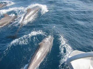 Dingeman heeft antimuggen netjes voor de raampjes gemaakt, Klaas heeft de ijskast uitgemest en schoongemaakt. Ik heb de aanloop van Dakar verkend en we maken wat foto’s van de zoveelste school dolfijnen die langs komt. Het blijft prachtig om te zien. Gisteren nacht voeren we door het ontbijt van honderden dolfijnen. Het was 0500 uur ik kwam naar buiten om Klaas af te lossen. De zee lichtte prachtig en we zagen duizenden hele kleine visjes op de vlucht voor de dolfijnen. Ze sprongen voortdurend het water uit, maar waren kansloos natuurlijk. De dolfijnen zwommen er rustig achteraan en deden zich ongetwijfeld flink te goed. Het hele schouwspel duurde zeker anderhalf uur. Indrukwekkend.